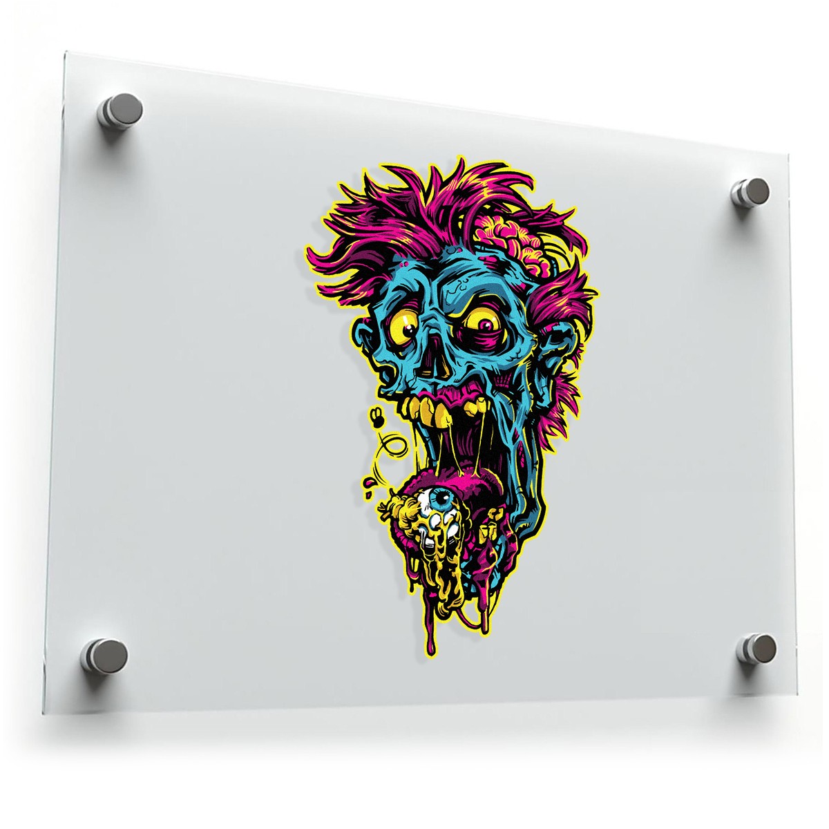 🎨 Bold, High-Detail Artwork: The intense colors and intricate detail make this zombie head sticker a standout piece of art, perfect for fans of horror and unique illustrations. 🎨