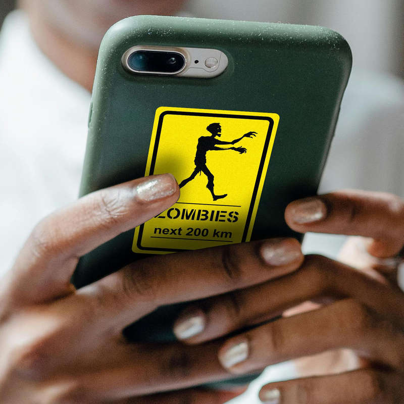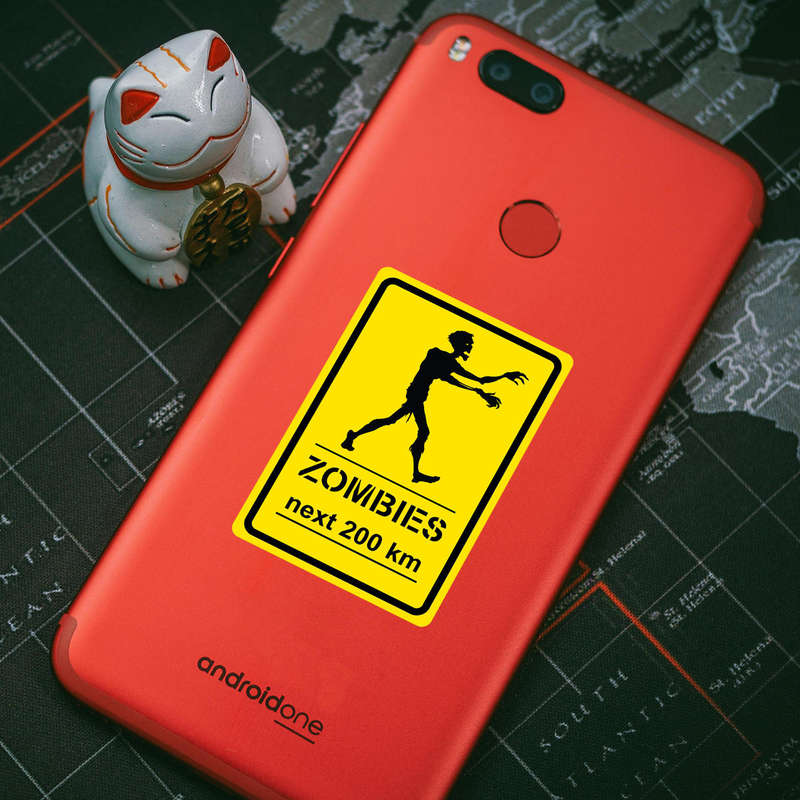 Zombies Next 200 KM Warning Sticker 🧟 Humorous Zombie Warning: Featuring the bold text “Zombies next 200 km” with a striking zombie silhouette, this sticker adds a fun and spooky touch to any surface. 🧟
